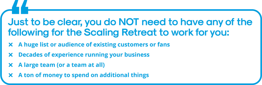 Or, you can start leveraging the “S.C.A.L.E. Method” done the RIGHT way in your business, following my own proven system I personally use and put together for you at the Scaling Retreat.